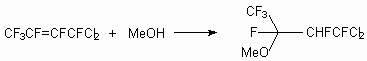 The double bond in perfluoro-2-methylbut-2-ene is extremely susceptible to nucleophilic attack and even reacted with neutral methanol (20 oC, 6 h) to produce 2-methoxy-nonafluoro-3-methylbutane and 2-methoxy-nonafluoro-3-methylbut-2-ene [29].