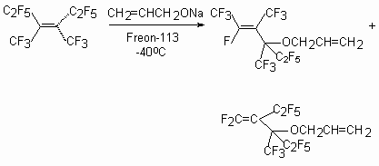 The reaction of tetramer tetrafluoroethylene with sodium derivative of allylic alcohol in Freon-113 at -40 oC leads to two products [46].