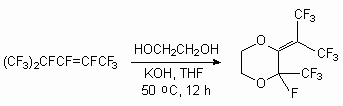 The isomerization is not found in the products of reaction between perfluoro-4-methylpent-2-ene and ethylene-glycol in a tetrahydrofuran (with KOH presence), and in the given conditions the derivative of a 1,4-dioxane (13) is formed with a low yield [55].
