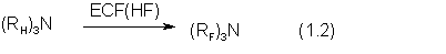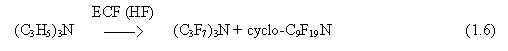 ECF of n-tributylamine in anhydrous liquid hydrogen fluoride occurs according to the equation as follows: