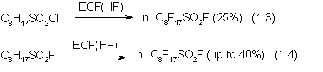 In the case of ECF according to (1.4) some electrolytic additive is necessary because the solution of C8H17SO2F in hydrogen fluoride does not conduct electric current. Sodium fluoride or some mercaptan (mostly n-butylmercaptan) is usually applied for such additives. The disadvantages of their addition are already discussed above.