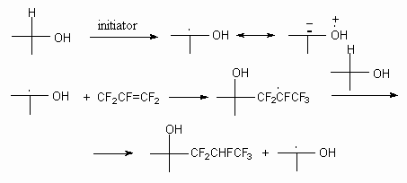 along with telomeric alcohols. Although the yield of these products is extremely