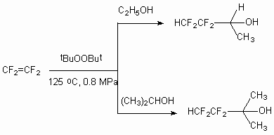 If chlorotrifluoroethylene is introduced into the reaction and 2,5-bis-(tert-butylperoxy)-2,5-dimethylhexane is used as radical initiator [44], that HClFCCF2CH2OH is obtained as main product with 95% selectivity.