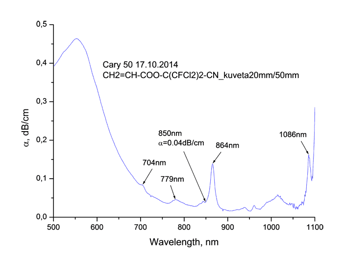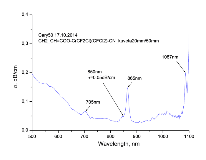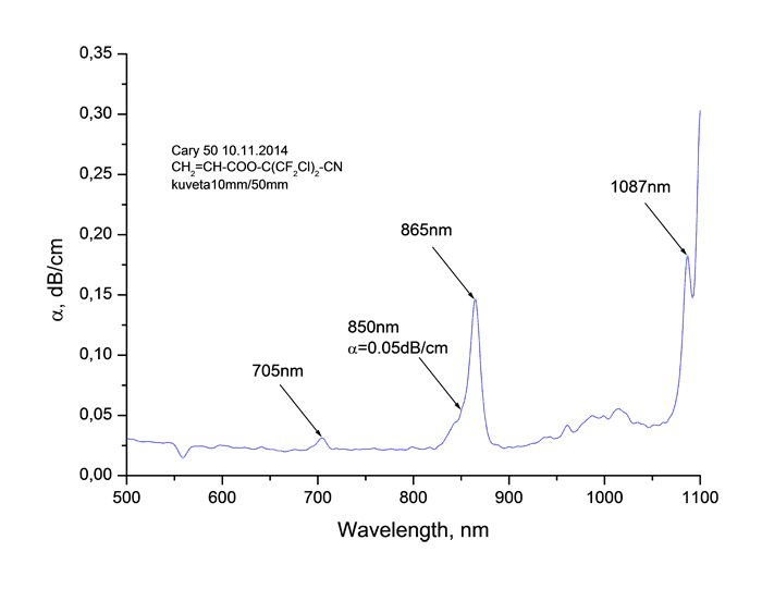 Ключевые слова: цианоперфторалкилакрилаты, цианохлорперфторалкилакрилаты, коэффициент поглощения, показатель преломления, интегральная оптика.